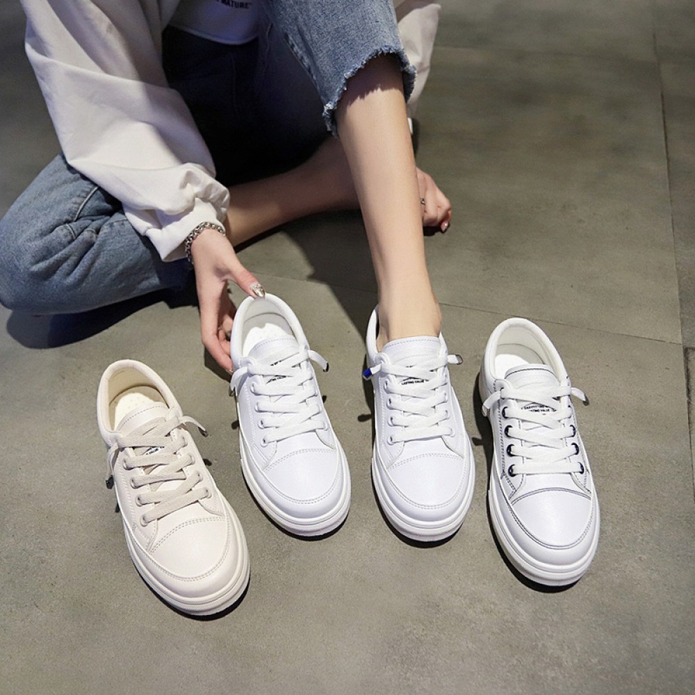 Spring New White Leather Shoes Running Flat Casual Shoes