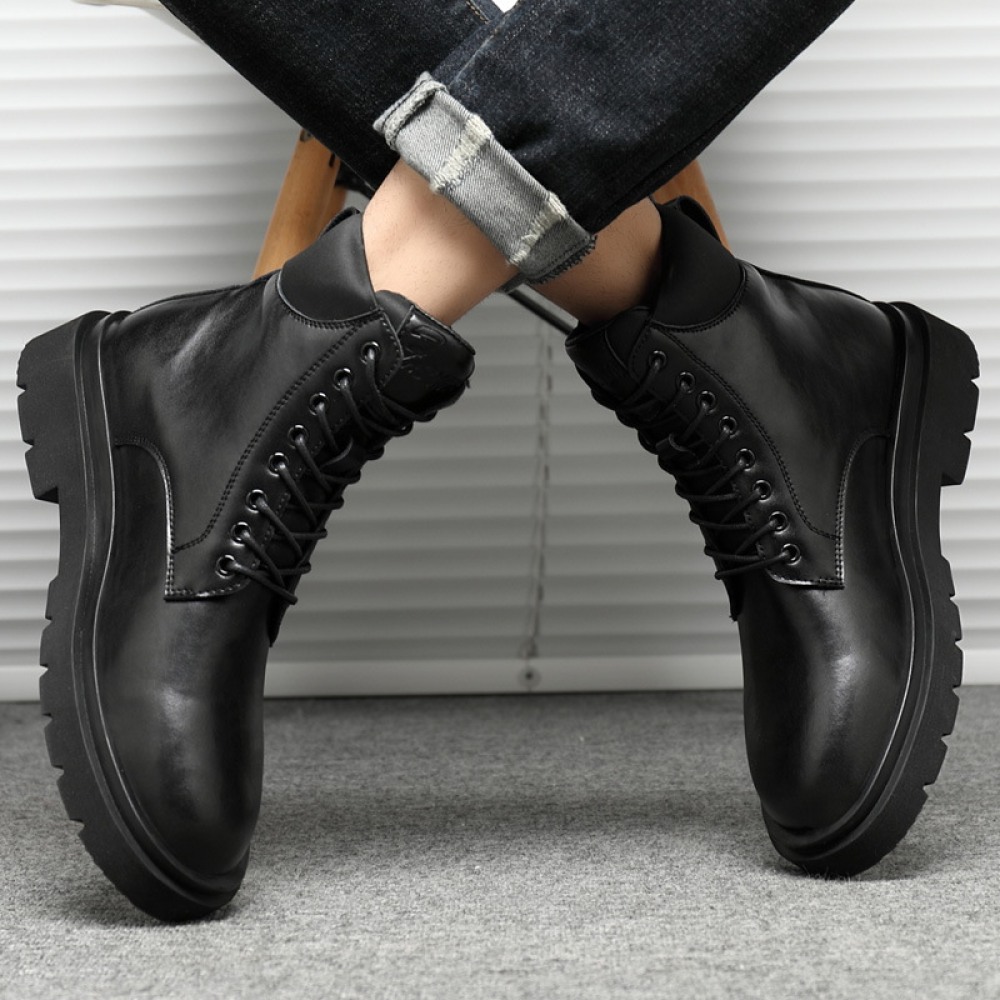 Big Head Leather Shoes Men's Trendy Snow Military Martin Boots