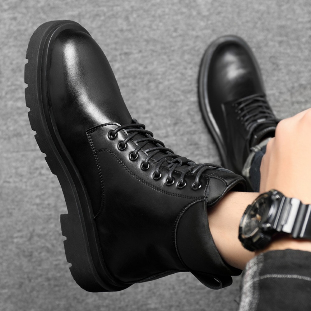 Men's British Style Tooling Boots Trend High-Top Shoes Casual Breathable Short Martin Boots