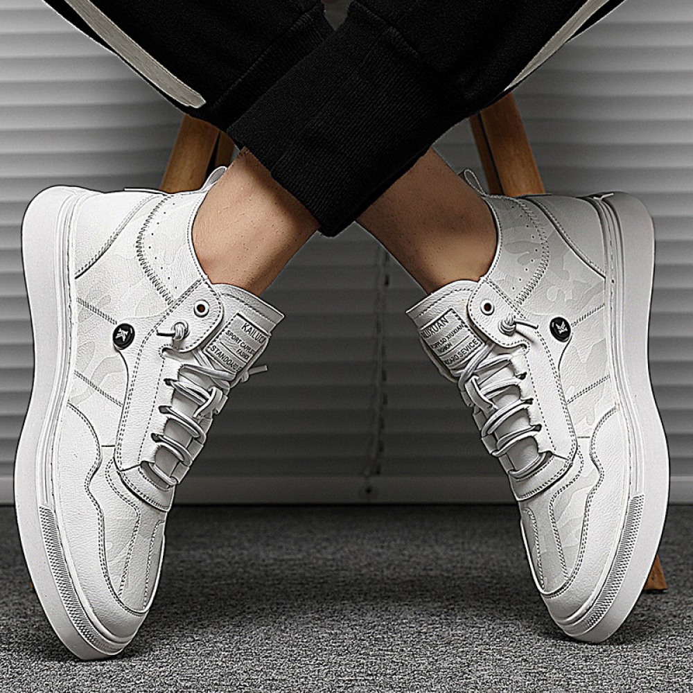 Men's Autumn New Trend Sports Casual Shoes Low-Top Leather Sneakers White