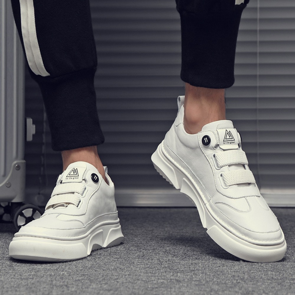 Autumn New White Men's Casual Thick-Soled Trend Sports Leather Shoes
