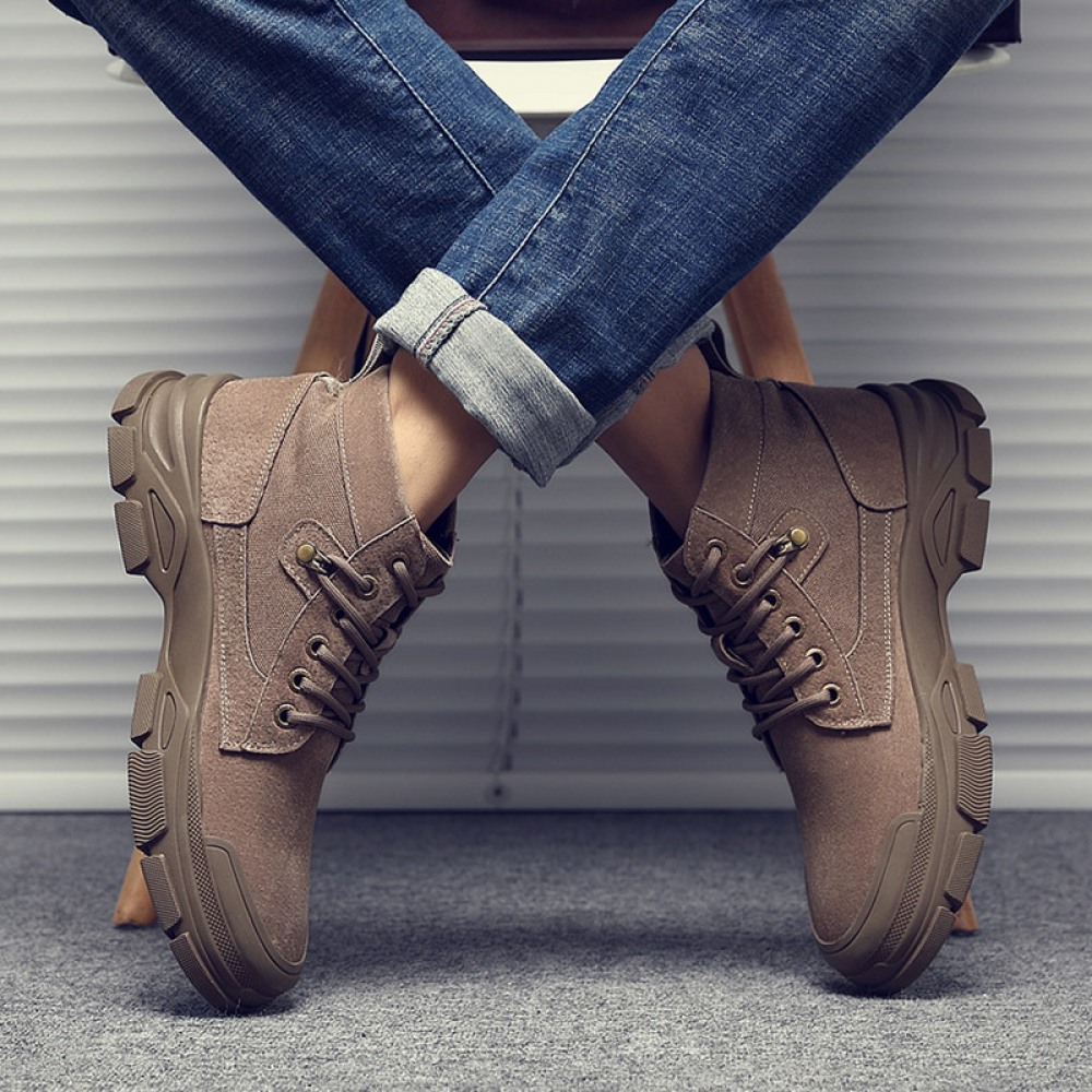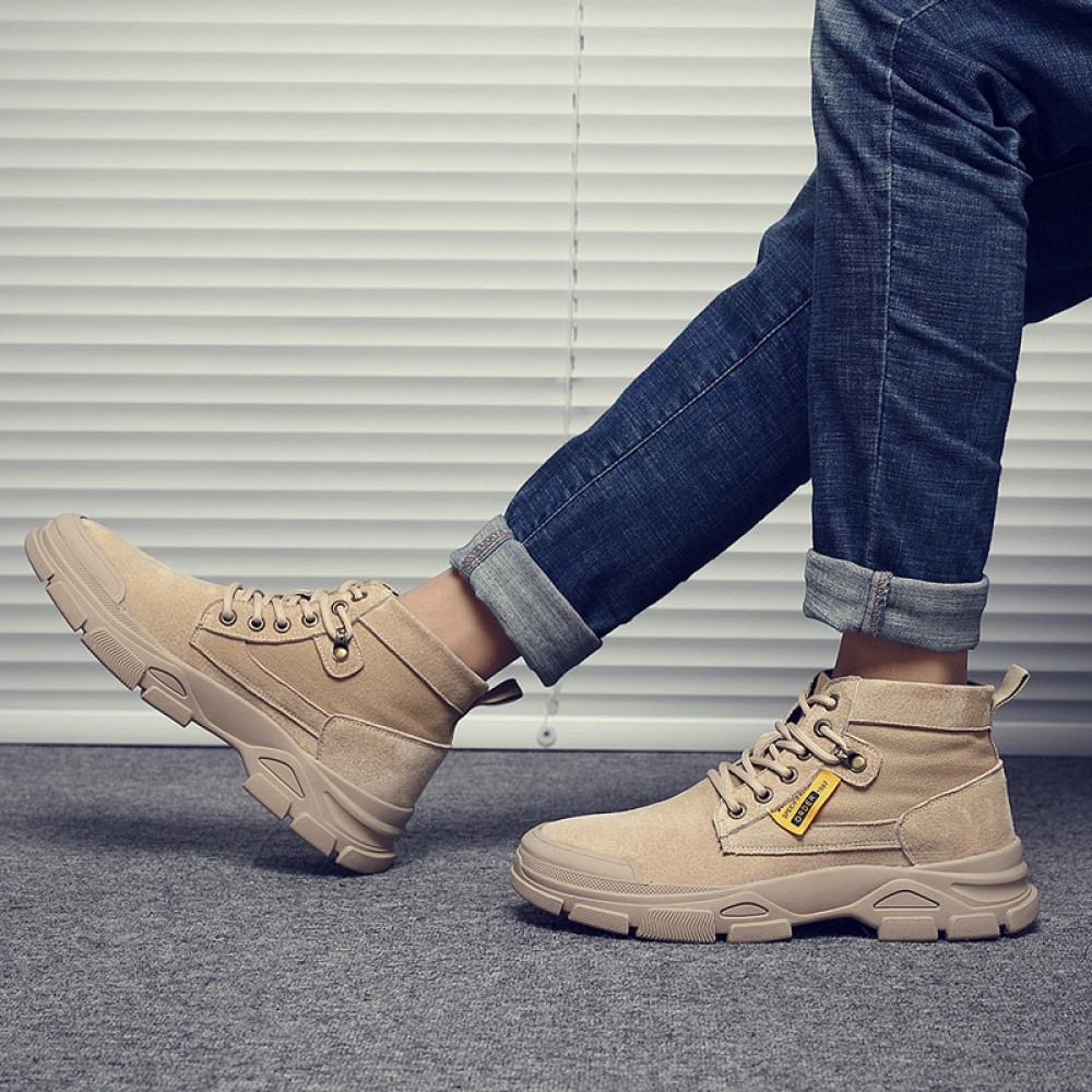 Men's British Style Tooling Boots Trend High-Top Shoes Casual Breathable Short Martin Boots