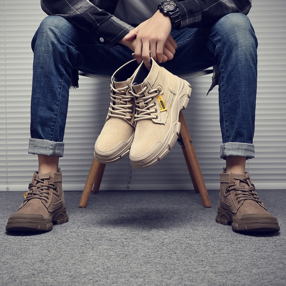New Men's British Style Leather Tooling Martin Boots High-Top Trend Desert Military Boots