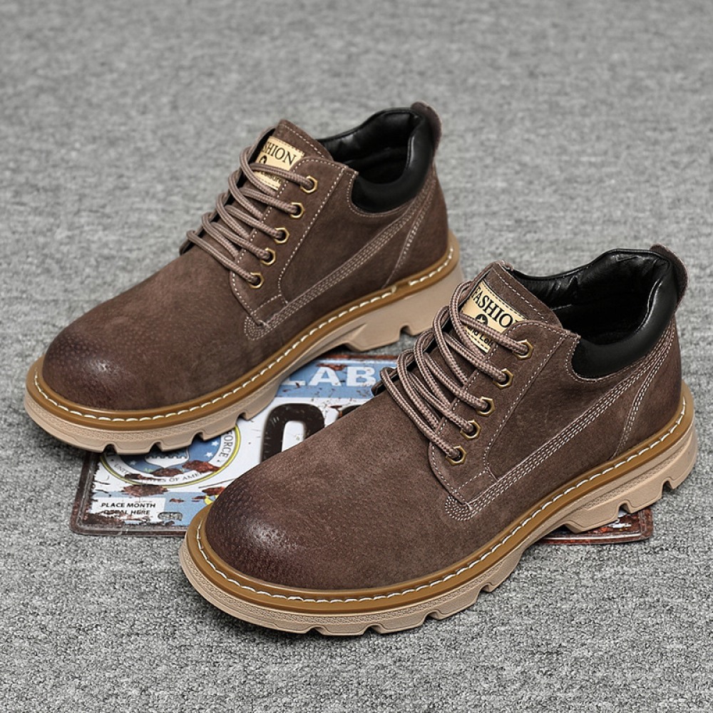 Men's British Style Tooling Boots Trend High-Top Shoes Casual Breathable Short Martin Boots
