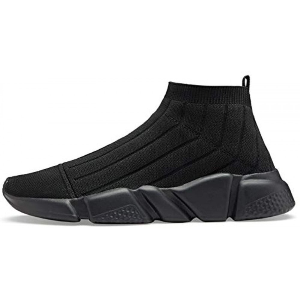 Men's Running Shoes Breathable Knit Slip On Sneakers Lightweight Athletic Shoes Casual Sports Shoes All Black